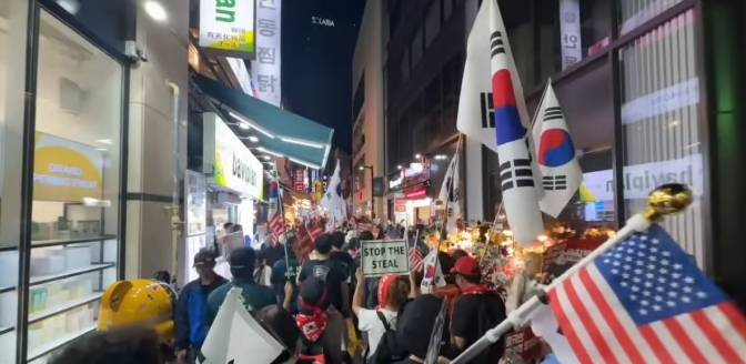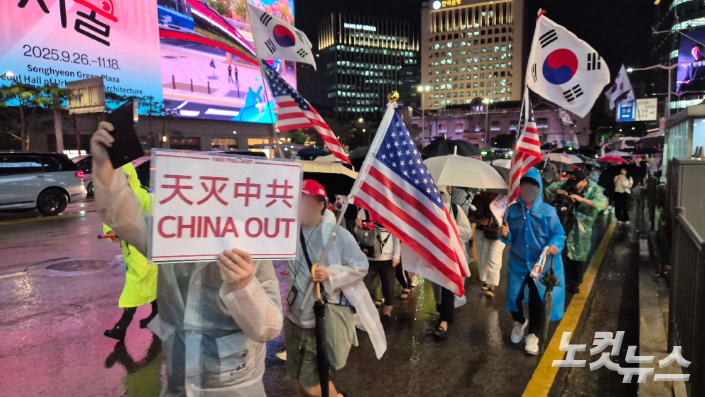 “부정선거 중국 개입”, “차이나 아웃(China Out)”, “우리가 찰리 커크다” 등의 구호가 등장하고 있으며, 중국 국기와 고위 인사 얼굴이 그려진 현수막을 훼손하는 퍼포먼스도 진행되고 있습니다. - 행진 경로 변화