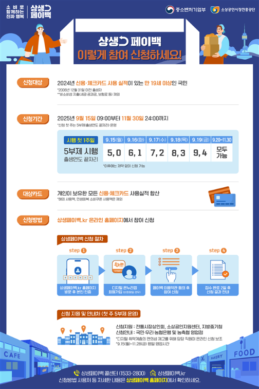 - 일부 카드사는 앱 또는 홈페이지에서 상생페이백 참여 신청을 받을 수 있습니다.