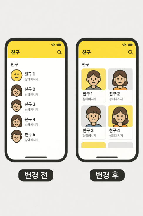 2025년 9월 23일, 카카오는 친구 탭을 ‘격자형 피드’ 형태로 바꾸는 업데이트를 단행했습니다.