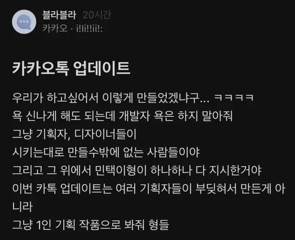 카카오는 “이용자의 소통 방식 변화”를 반영한 업데이트라고 설명했지만,