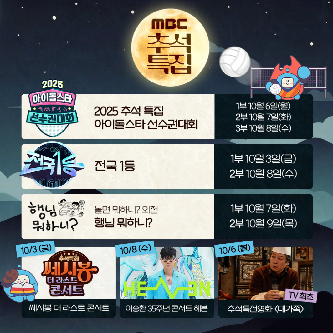 그래서 오늘은 2025년 추석을 맞아 KBS, MBC, SBS 주요 방송사의 추석특집 편성표와 추천 프로그램들을 한눈에 정리해드릴게요.