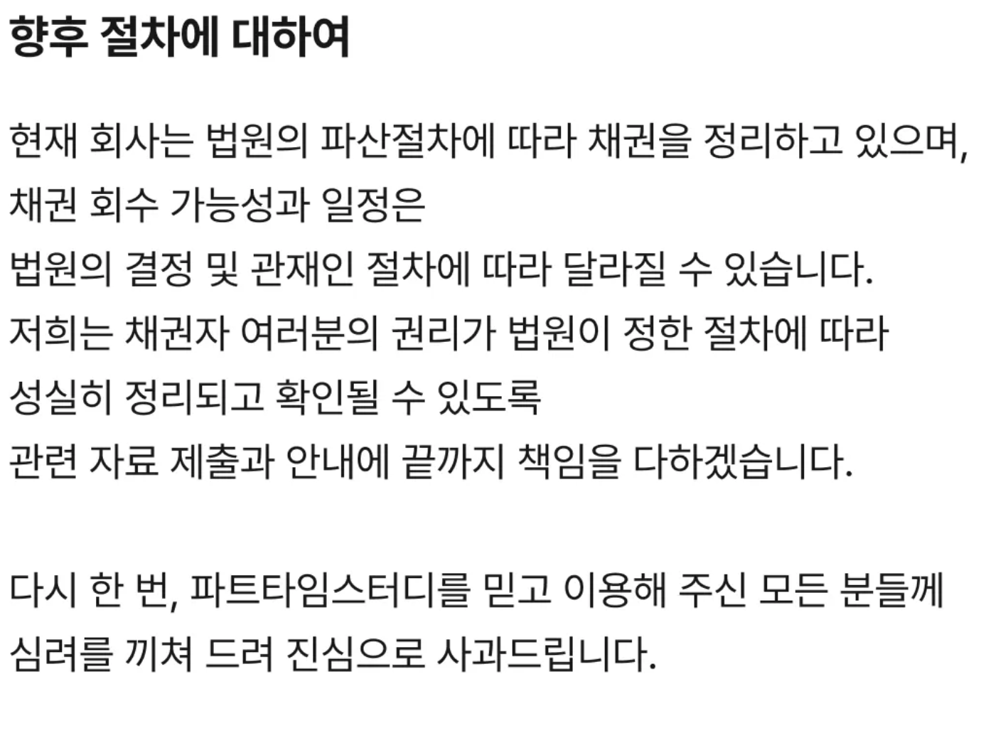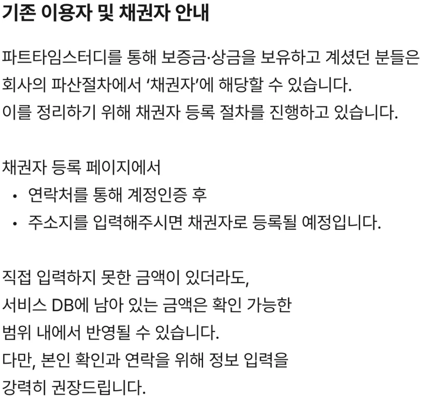파트타임스터디 파산 운영종료 보상금 보증금 환불안됨 피해자 채권자등록 방법 총정리