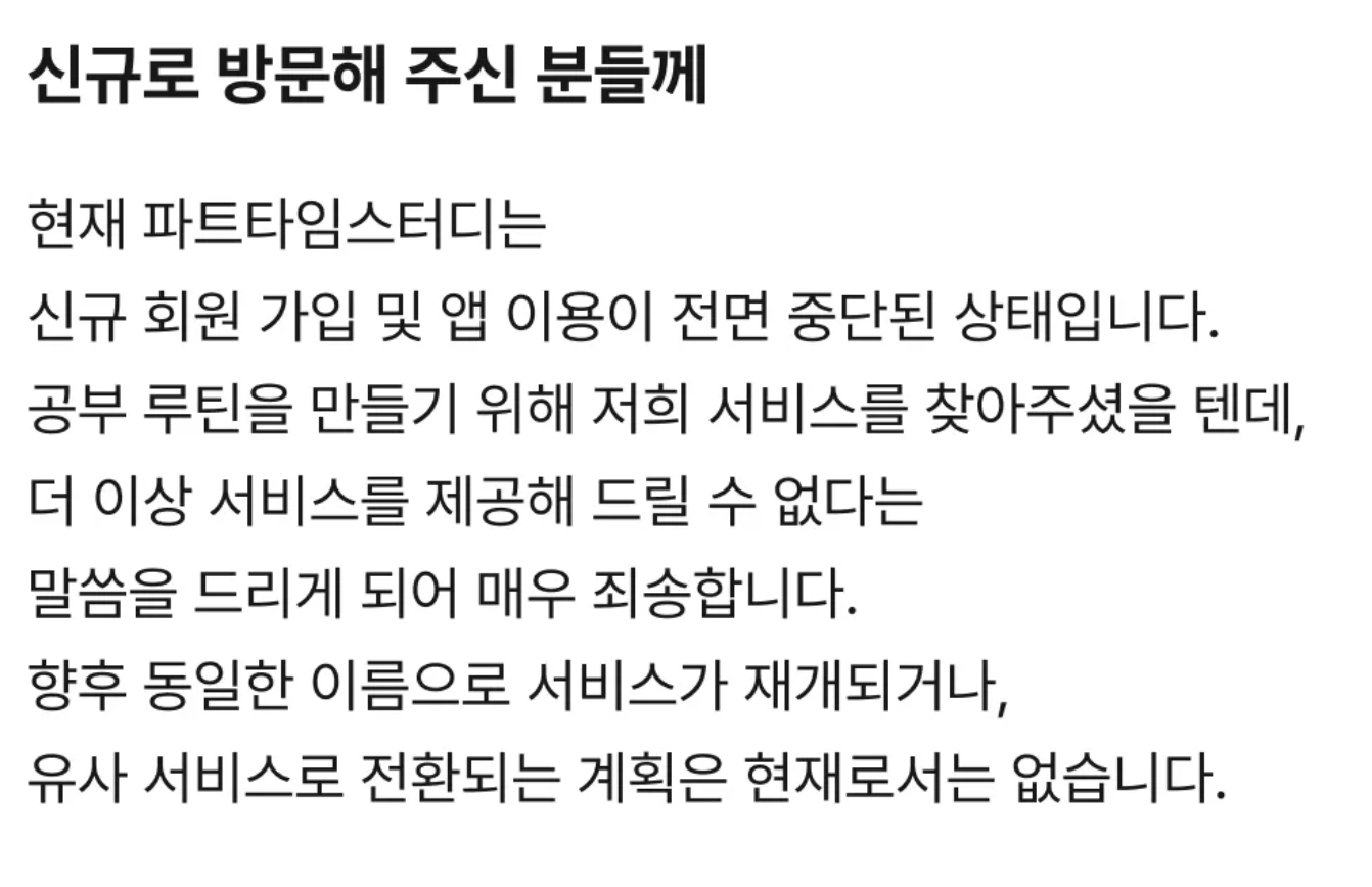 2025년 11월 기준으로, 공부 앱 ‘파트타임스터디’ 운영사가 파산 절차에 들어가면서